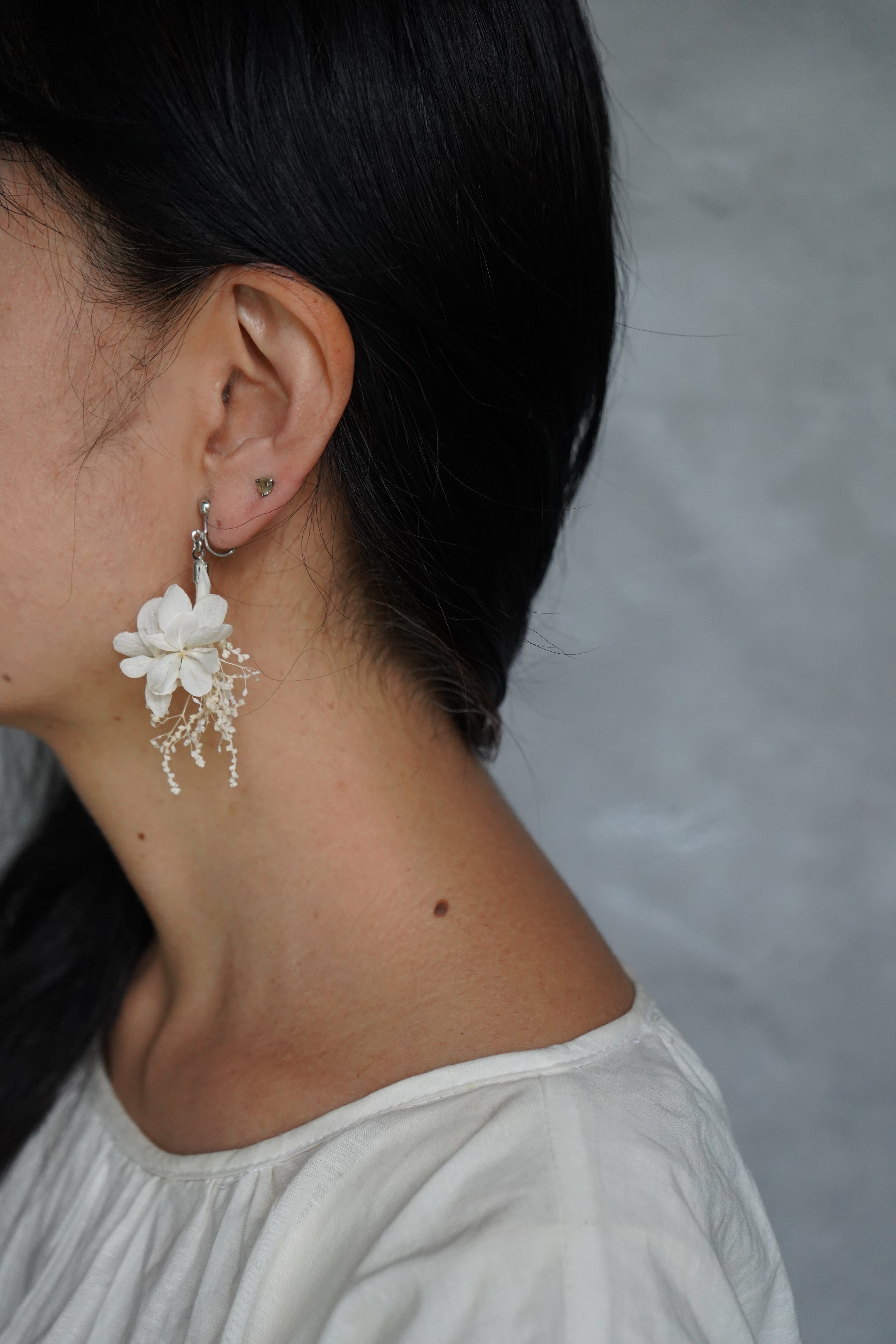 イヤリングをつけ外しする際は、お花の部分を引っ張らず、