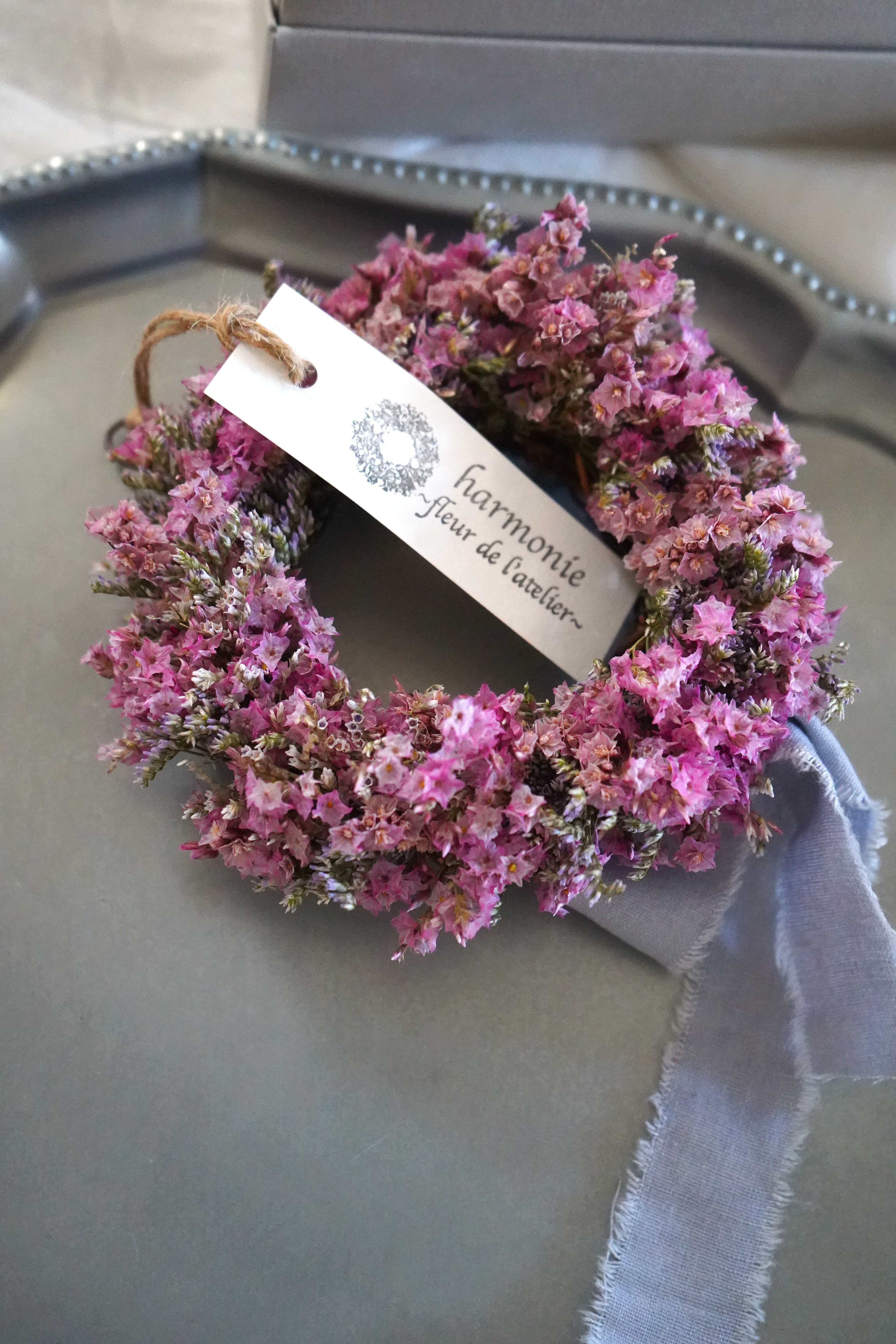 手のひらにおさまる小さなリースはBOXのまま飾ったり、プレートの上にのせて飾ると、その可愛らしさが引き立ちます。