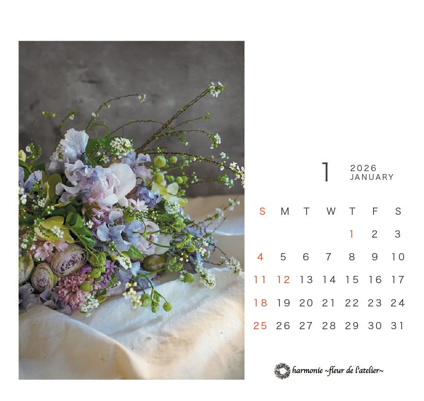 花のアトリエ ”アルモニ” 2026年オリジナルカレンダーのご案内です。