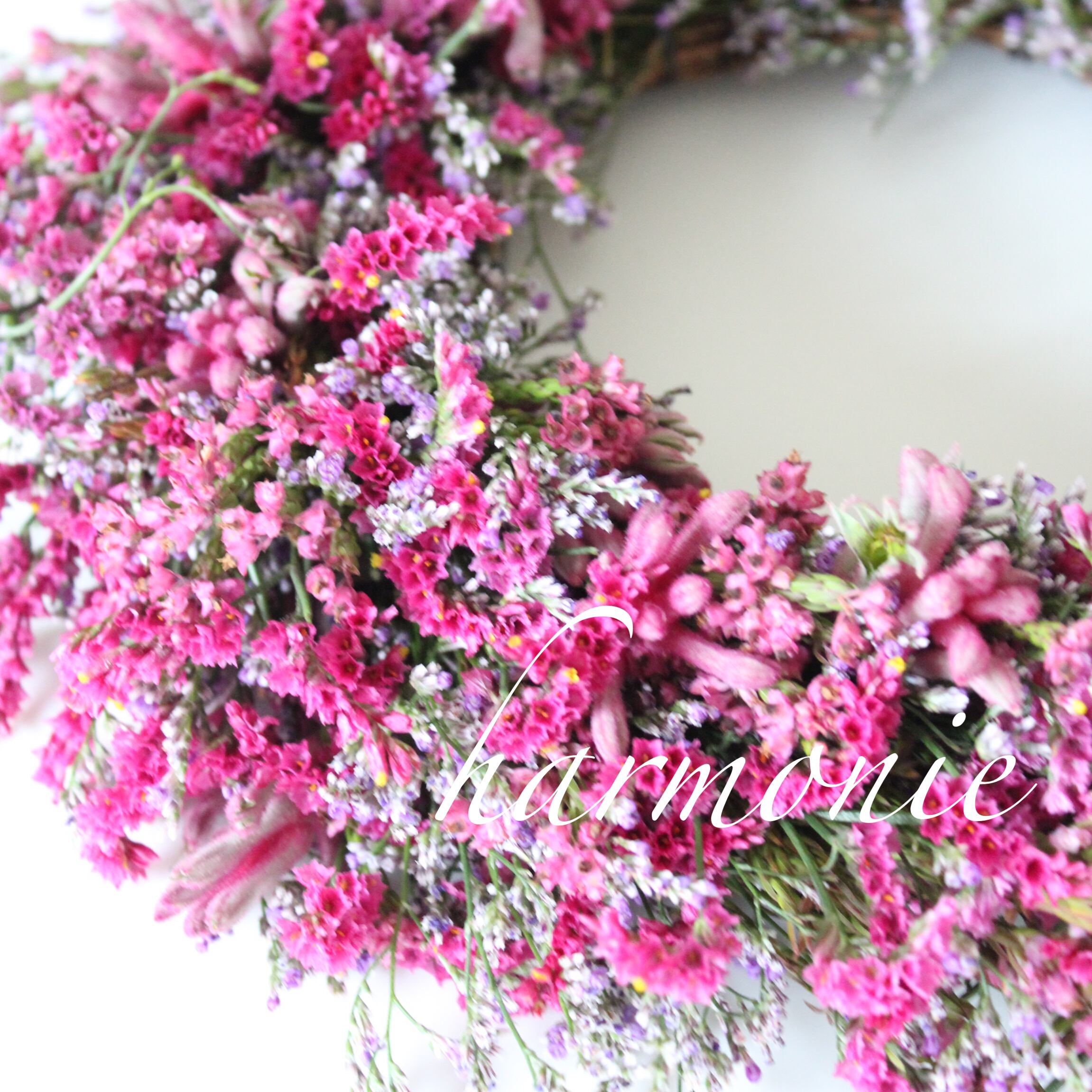 地中海原産やオーストラリア原産の春の花を使用しています。色はマゼンタピンクと紫のミックスです。