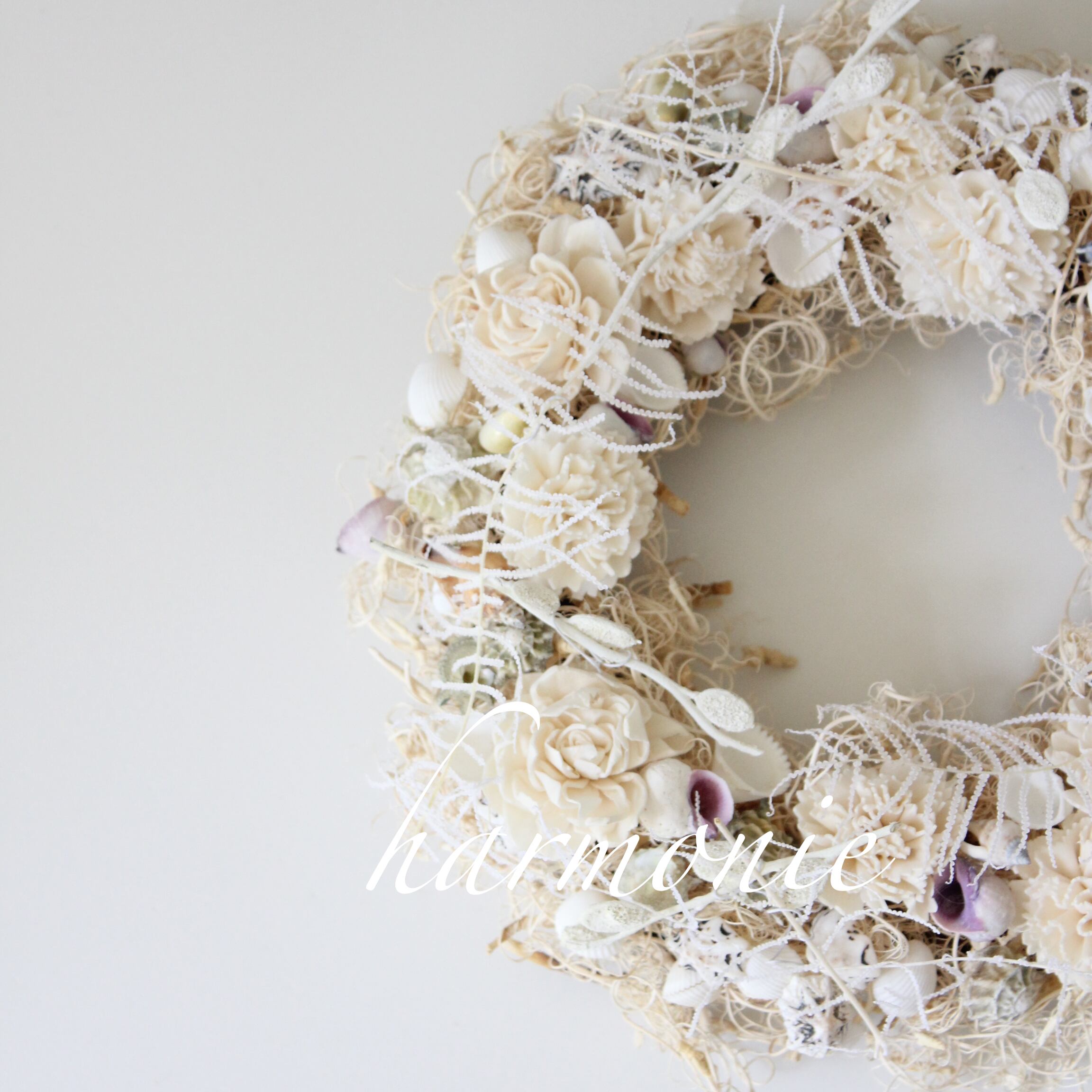 貝殻とソラフラワーを使った夏のリースです。