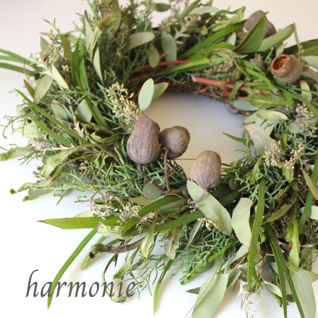 3種のユーカリなど常緑のリーフをmixしたナチュラルリースです。