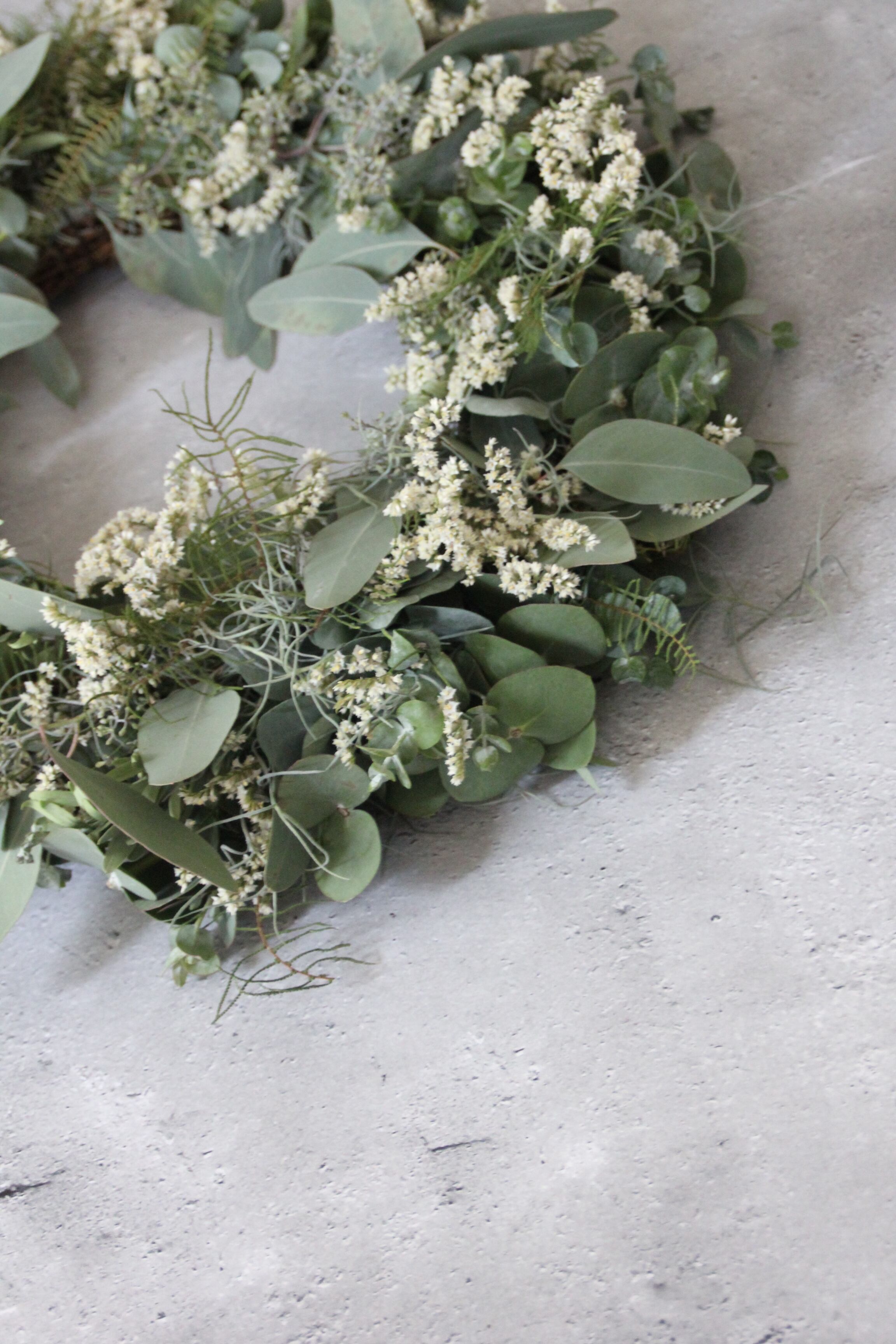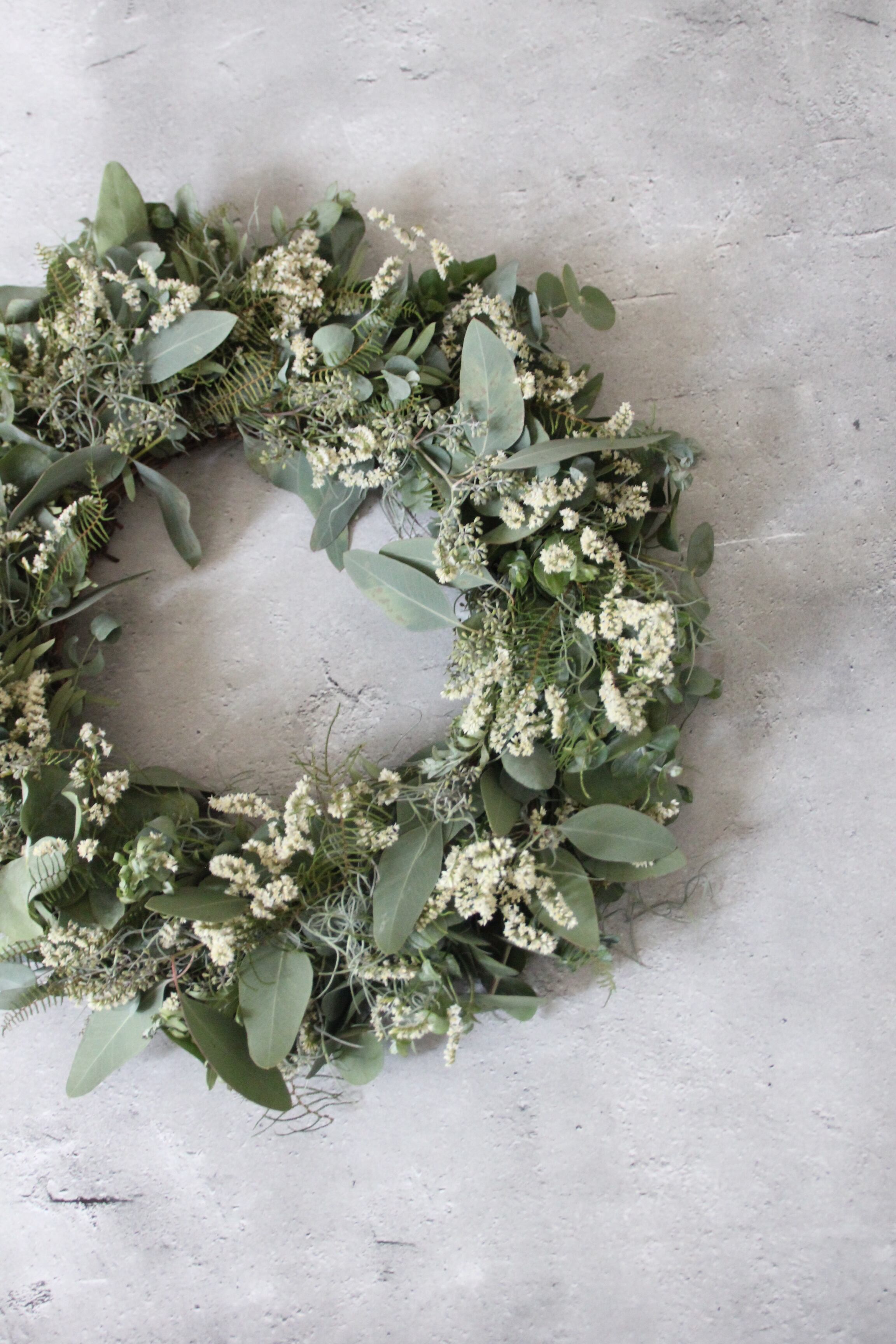 リモニウムのホワイトを使用した大きなサイズのリースです。